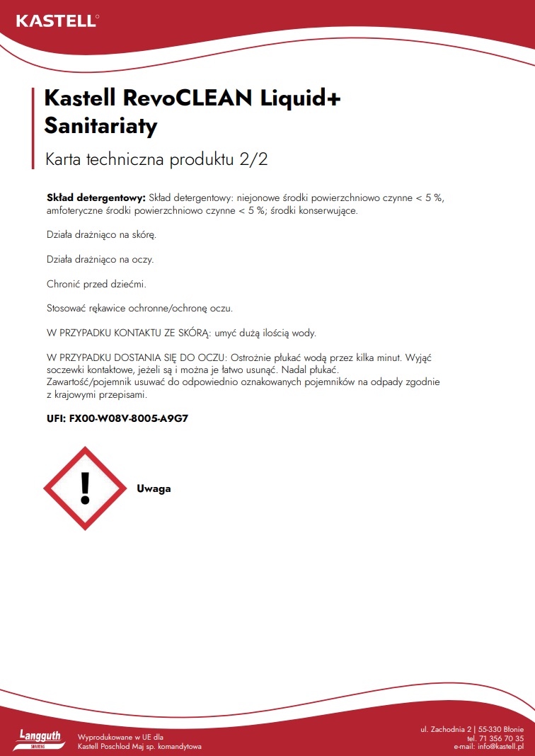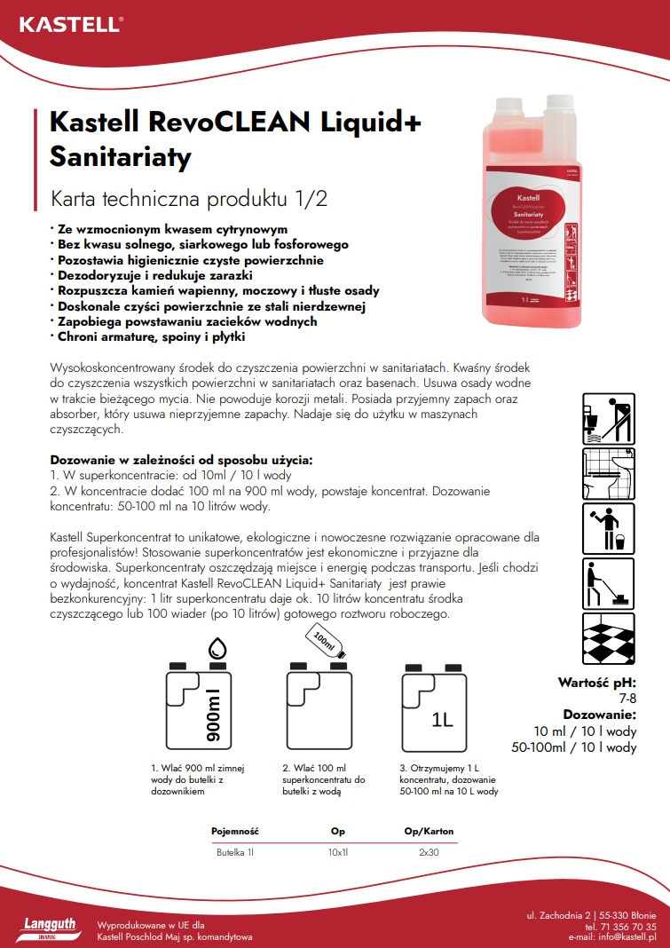 Kastell RevoClean Liquid+ Sanitariaty 1L